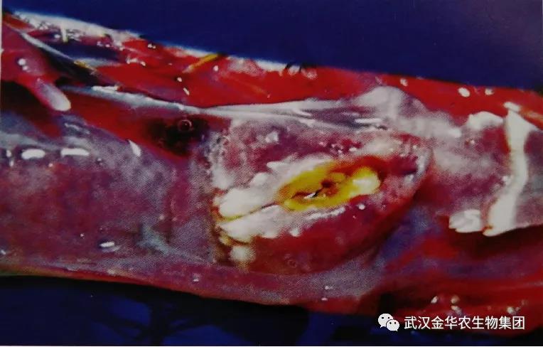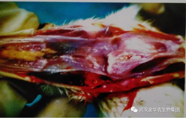 這些粘膜上的潰瘡很難除去,所以粘膜上常遺留出血裂口。潰瘡往往成長而形成乾酪狀偽膜。肺部偶爾充血而氣囊呈混濁狀。