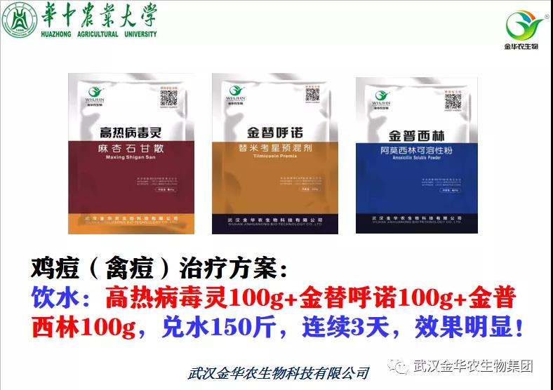 雞痘(禽痘)的治療措施:療---原則為清熱解毒+消炎殺菌+腸道拉稀藥,配合使用。