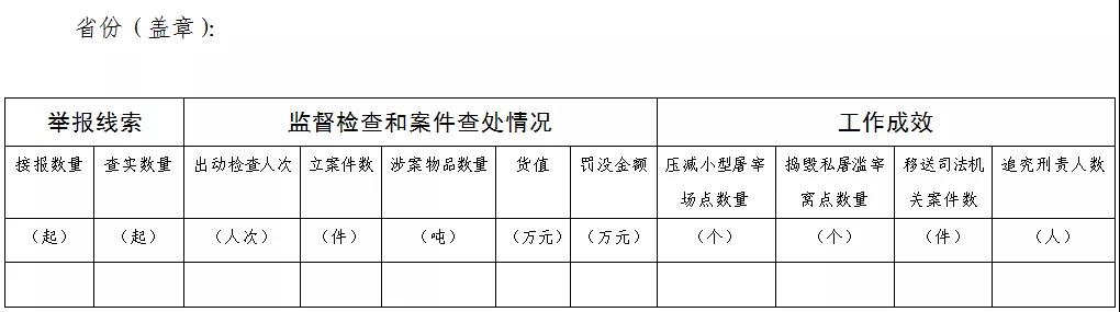 嚴(yán)厲打擊生豬屠宰違法行為專項行動情況統(tǒng)計表