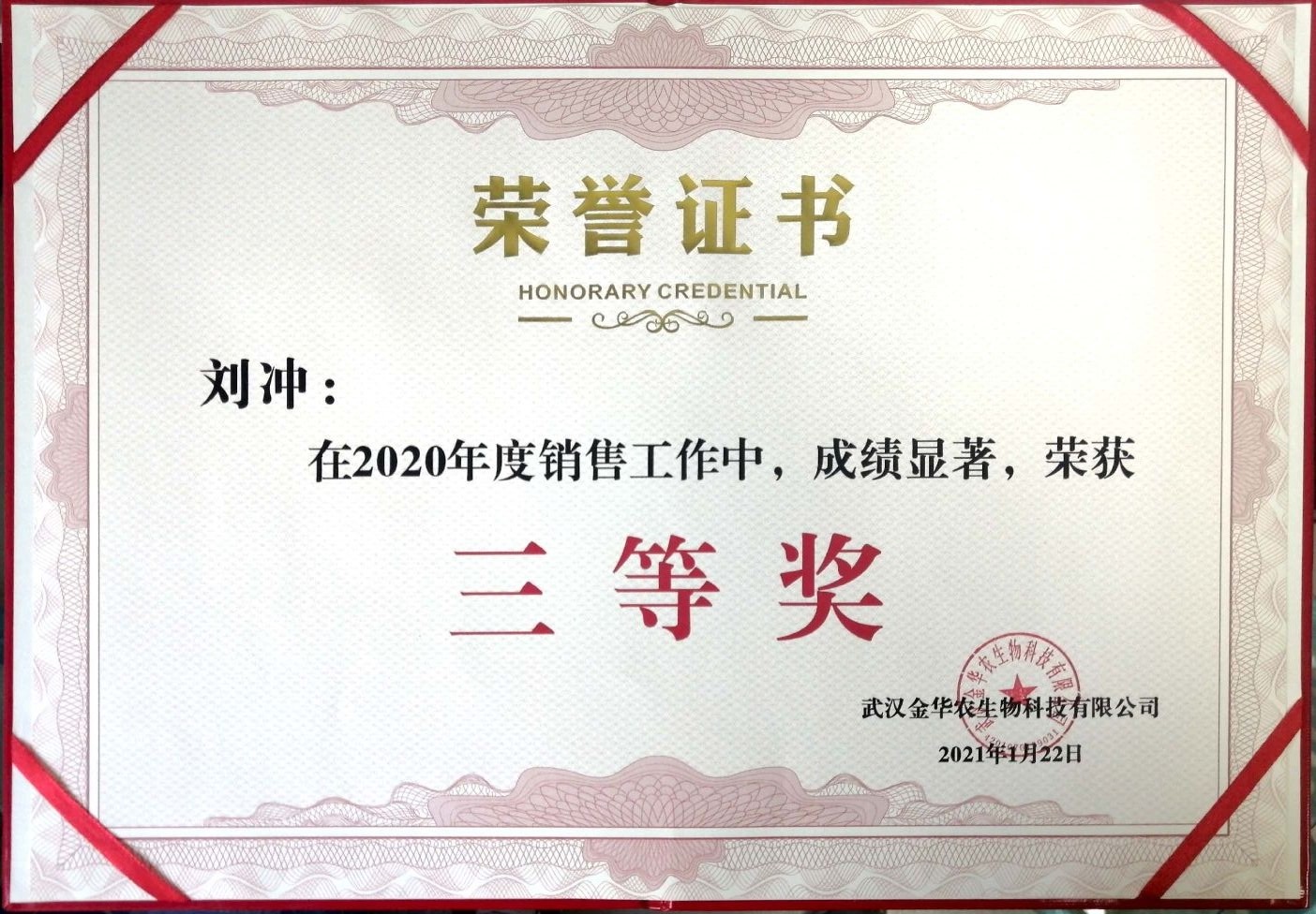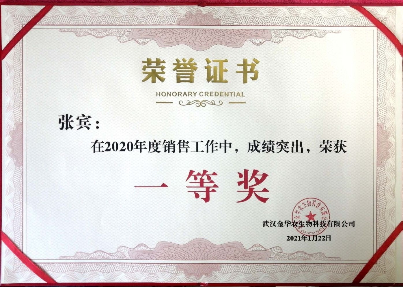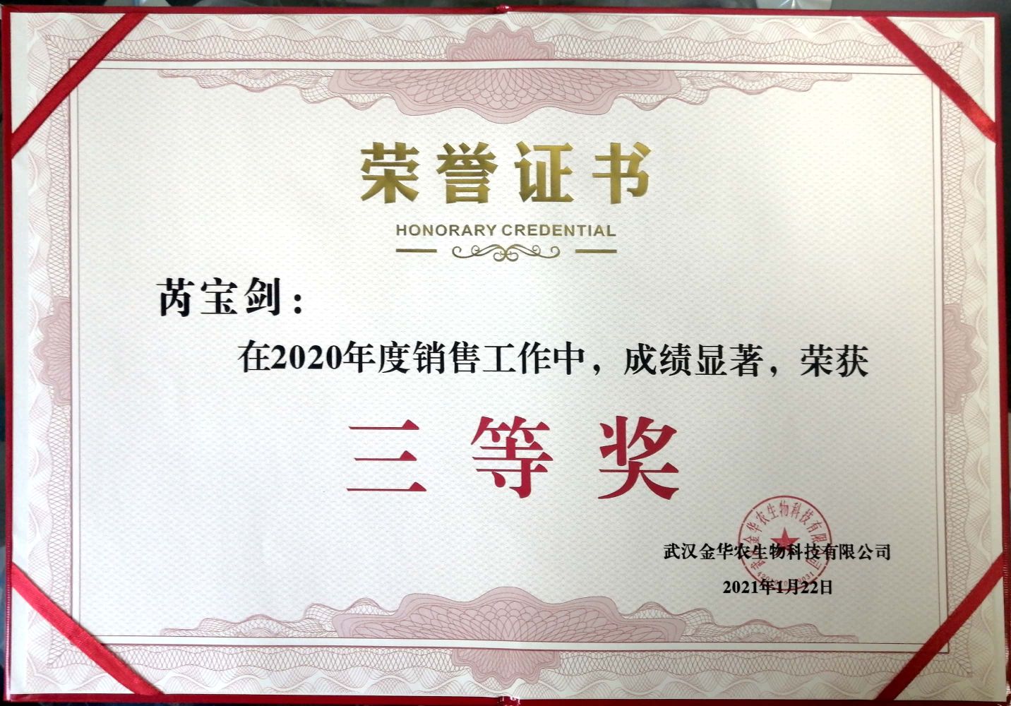 武漢金華農(nóng)生物2020年度銷售業(yè)績優(yōu)秀表彰獲獎名單