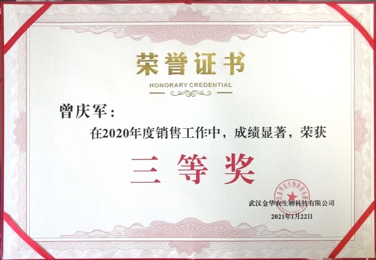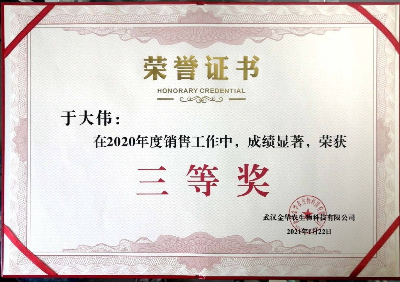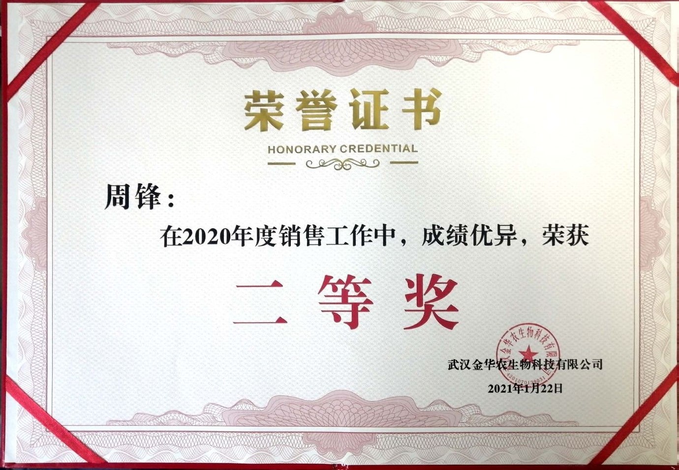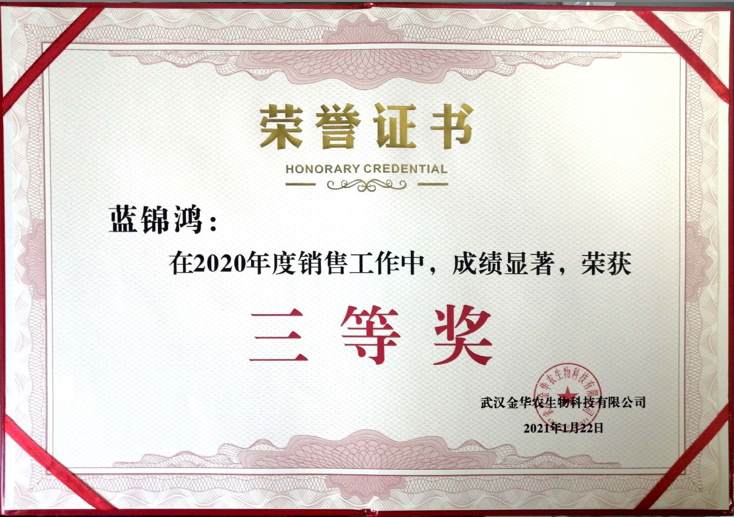 武漢金華農(nóng)生物2020年度銷售業(yè)績優(yōu)秀表彰獲獎名單