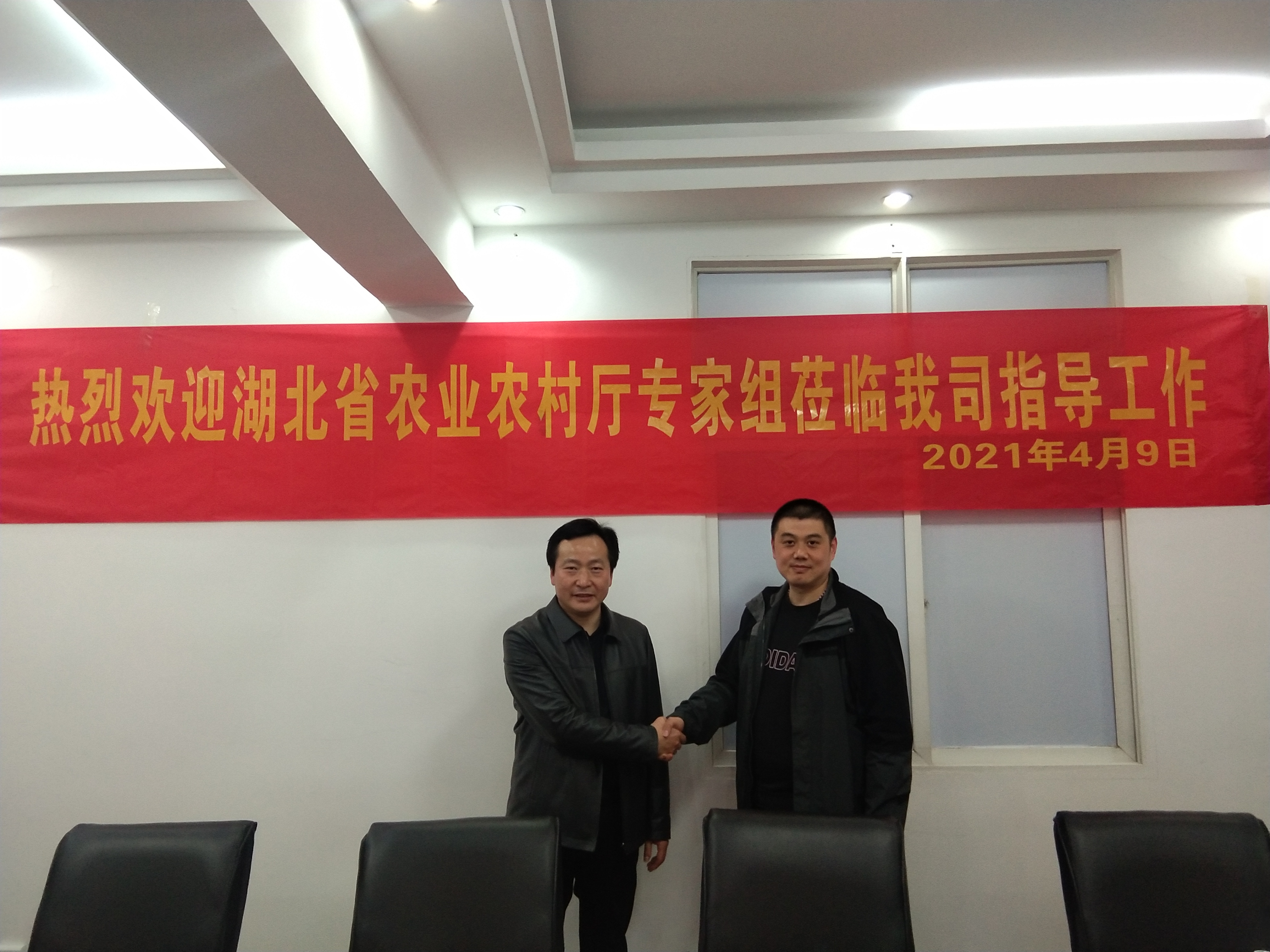 ▲驗(yàn)收通過,湖北省農(nóng)業(yè)農(nóng)村廳領(lǐng)導(dǎo)、武漢金華農(nóng)生物公司領(lǐng)導(dǎo),親切握手,合影留念