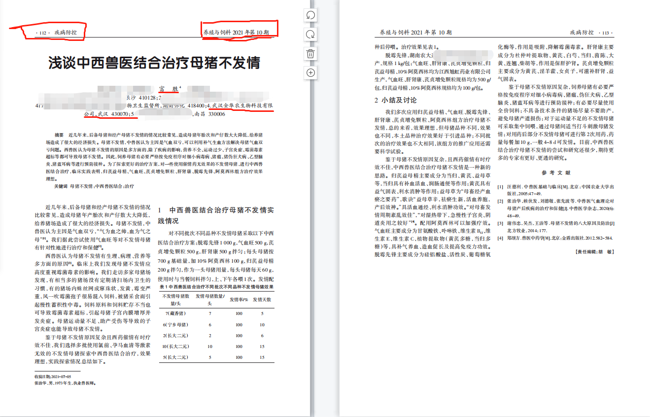 試驗表明,武漢金華農(nóng)研發(fā)的新方法,解決母豬不發(fā)情的中西獸醫(yī)結(jié)合組方,效果理想。鑒于母豬不發(fā)情原因復雜且西藥催情有時會療效不佳,武漢金華農(nóng)選擇多批使用氯前、孕馬血清等激素無效的不發(fā)情母豬探索中西獸藥結(jié)合治療,取得了一定的效果。且此法易操作,穩(wěn)定系數(shù)高,藥物使用安全性高,推廣性較強。