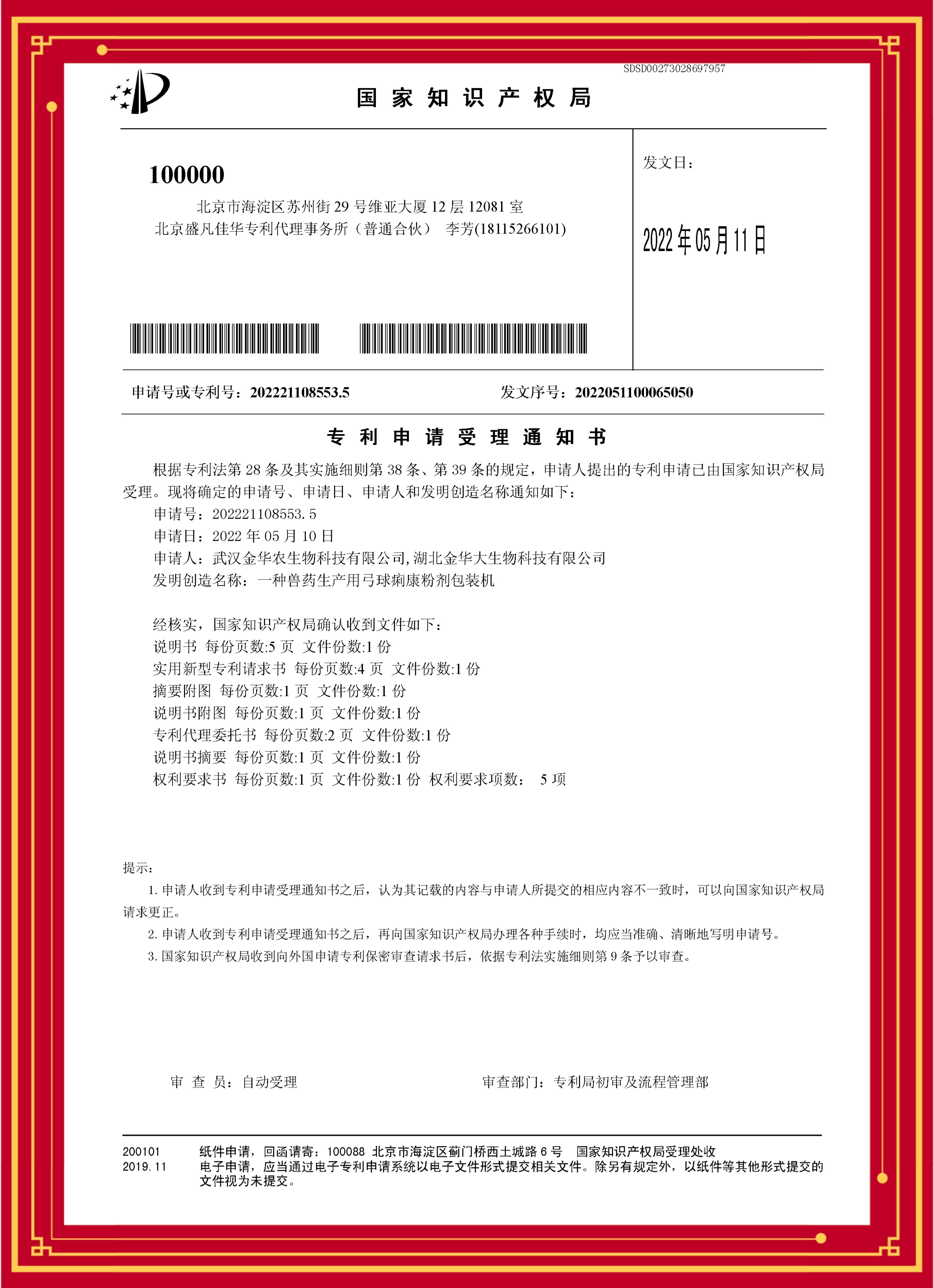 科技發(fā)明專利(金普西林):專利號—202221407935.8