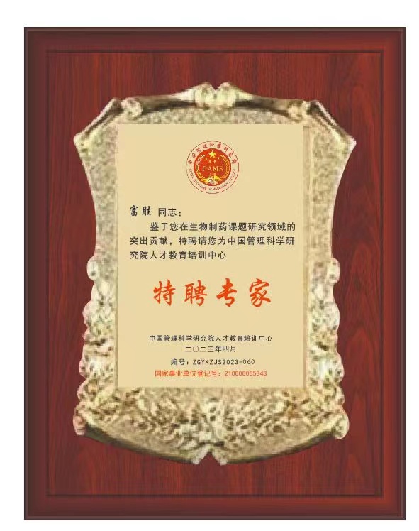 中國科學研究院“生物制藥”榮譽證書