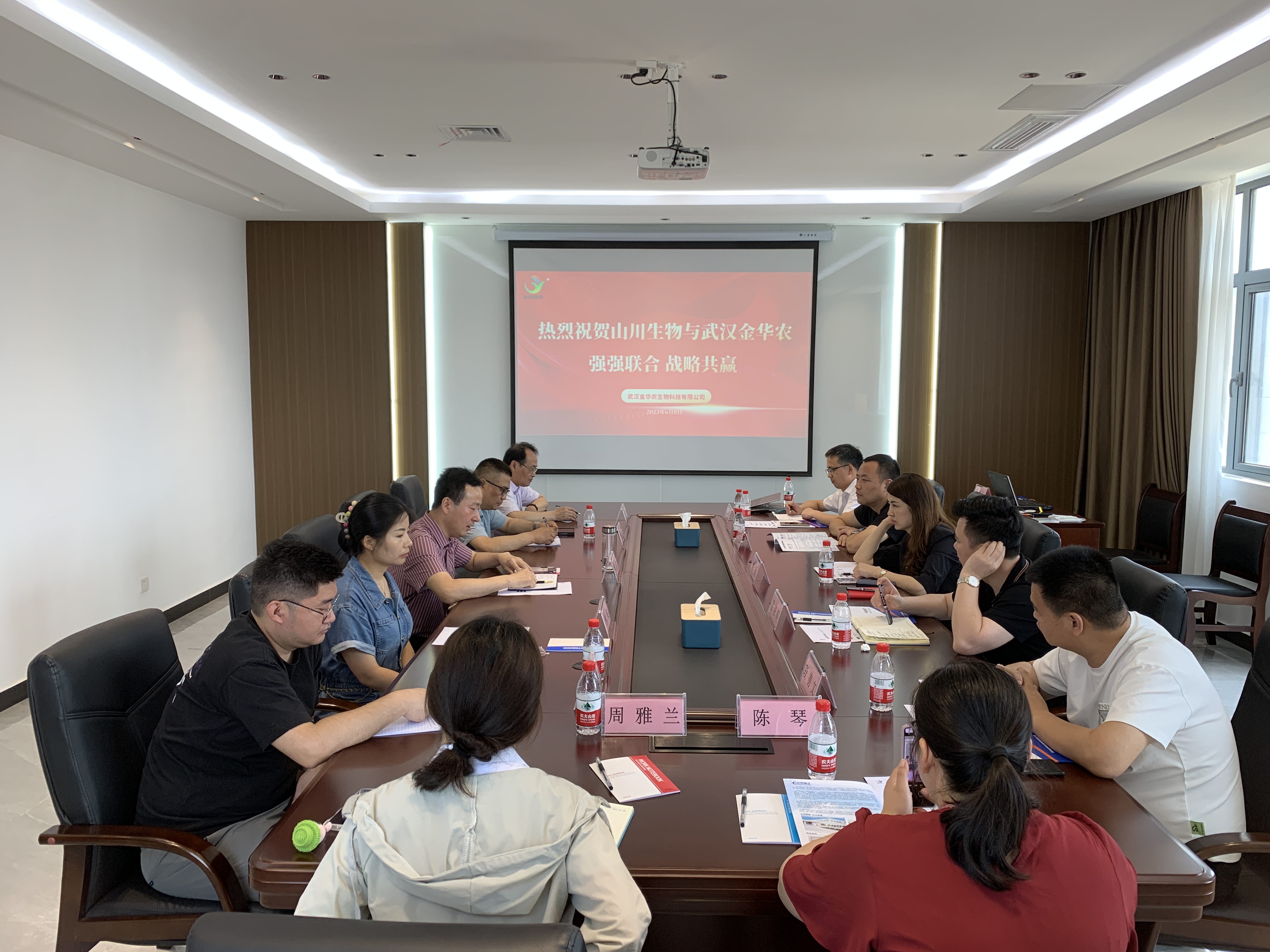 謀發(fā)展,促共贏!2023年6月8日,山川生物科技(武漢)有限公司(后文簡稱“山川生物”)高管代表團到訪武漢金華農(nóng)生物科技有限公司(后文簡稱“武漢金華農(nóng)”),雙方就強強聯(lián)合市場開拓進行了深入交流。