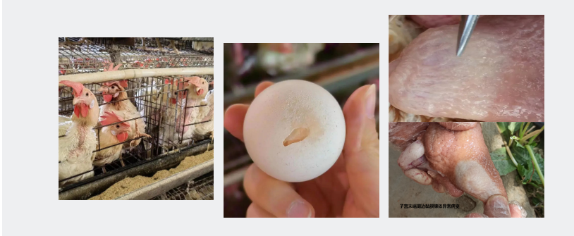? ? ? (1)寧經(jīng)理所在區(qū)域禽類養(yǎng)殖較多,近日接到廣西某禽類養(yǎng)殖場求助,說目前部分日齡300天的雞出現(xiàn)了雞冠蒼白、雞冠薄、倒冠,產(chǎn)蛋率由96%下降到85%,蛋殼質(zhì)量差、破殼蛋、薄殼蛋多的癥狀。經(jīng)剖檢發(fā)現(xiàn)雞腎臟萎縮、肝臟萎縮,卵泡數(shù)量減少,輸卵管子宮部末端有白色病變,同日將檢測圖譜、剖檢情況上報武漢金華農(nóng)生物公司技術(shù)診斷中心,初步確診為雞傳染性貧血病與滑液囊支原體混感,立即給出控制方案:金替呼諾+華農(nóng)樂健+金泰樂欣,3天后回訪,雞群采食量上升,狀態(tài)明顯好轉(zhuǎn),呼吸道減輕,癱雞減少,10天后蛋層上升2.5個點。
