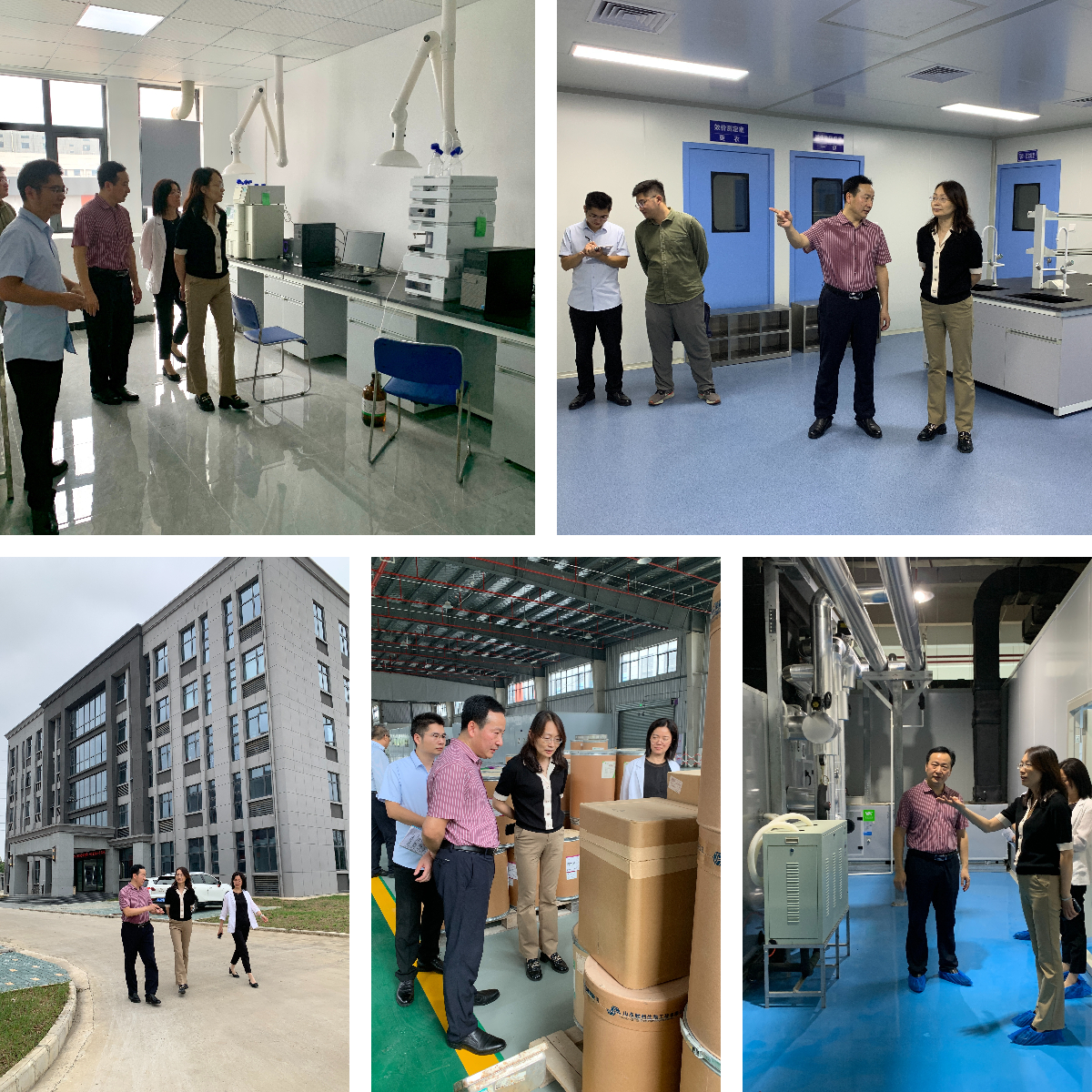 圖為:省藥檢所領導一行參觀我司行政大樓、GMP車間、藥理實驗室
