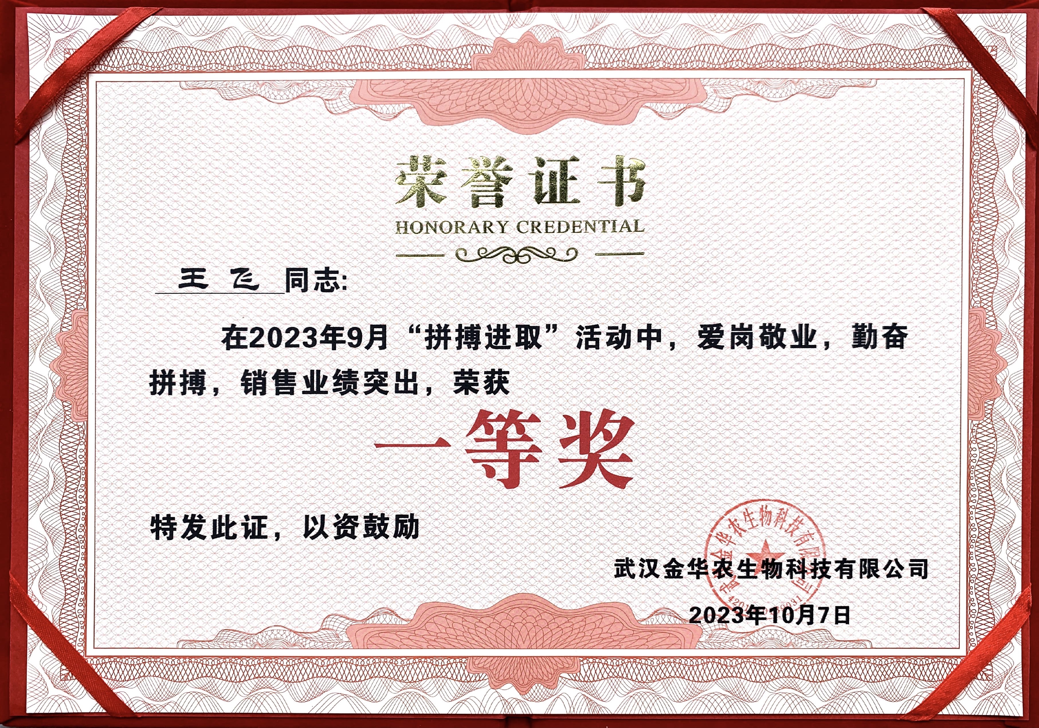 祝賀四川市場王飛經(jīng)理在2023年“拼搏進(jìn)取”活動中榮獲一等獎。歲月留痕,人生無悔,從銷售冠軍身上我們看到的是武漢金華農(nóng)人的兢兢業(yè)業(yè)、甘于付出的忘我工作。作為老金華農(nóng)人,他竭心盡力,全力而為,營銷業(yè)績成為所有員工的楷模。市場營銷風(fēng)起云涌,你用業(yè)績向全公司證明你是當(dāng)之無愧的銷售冠軍!