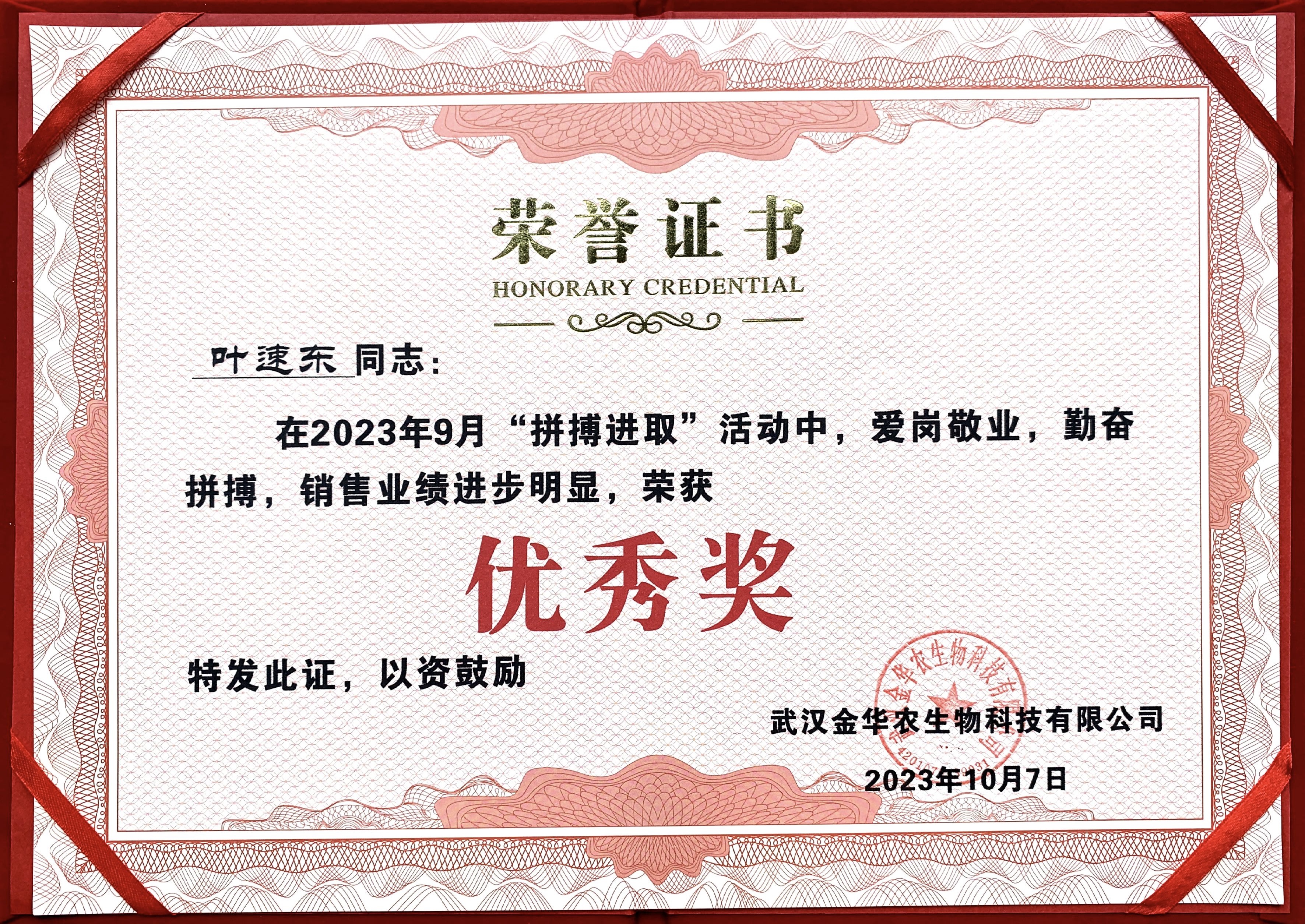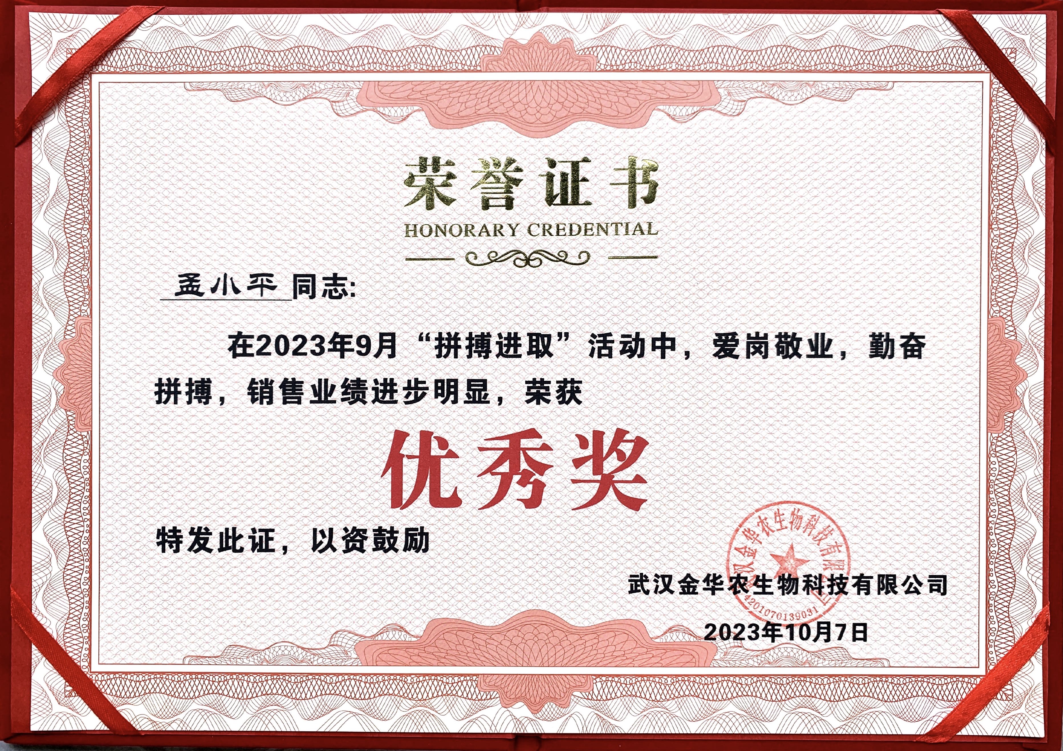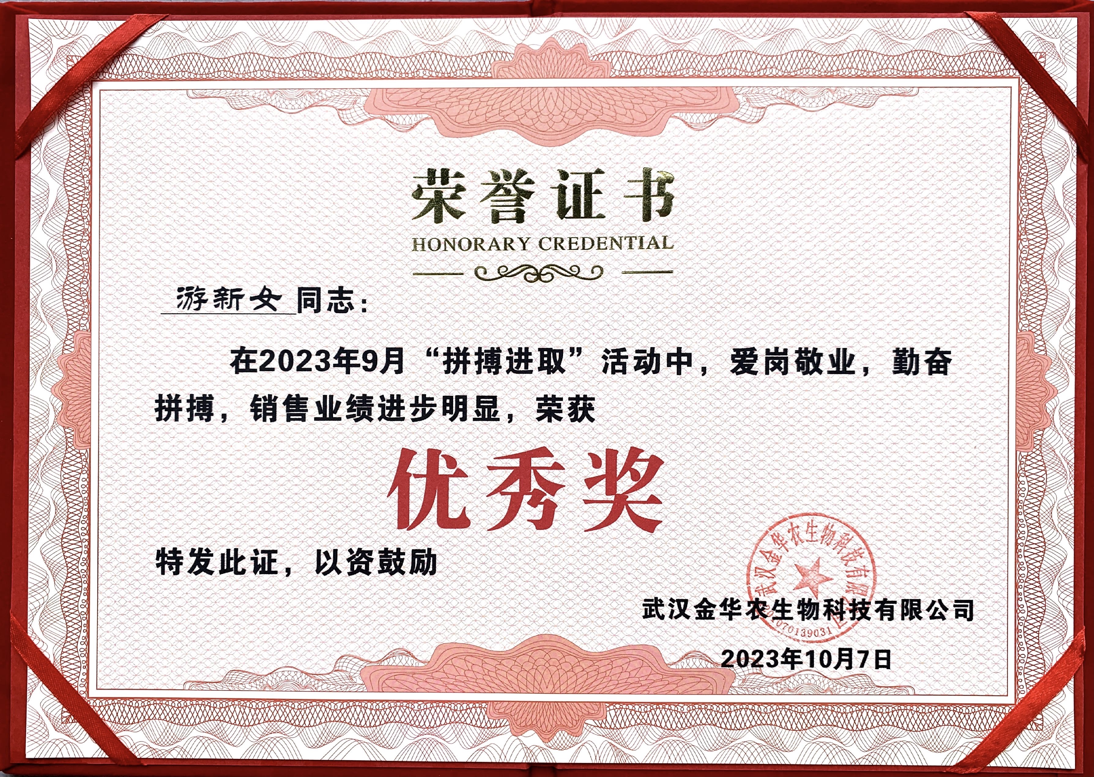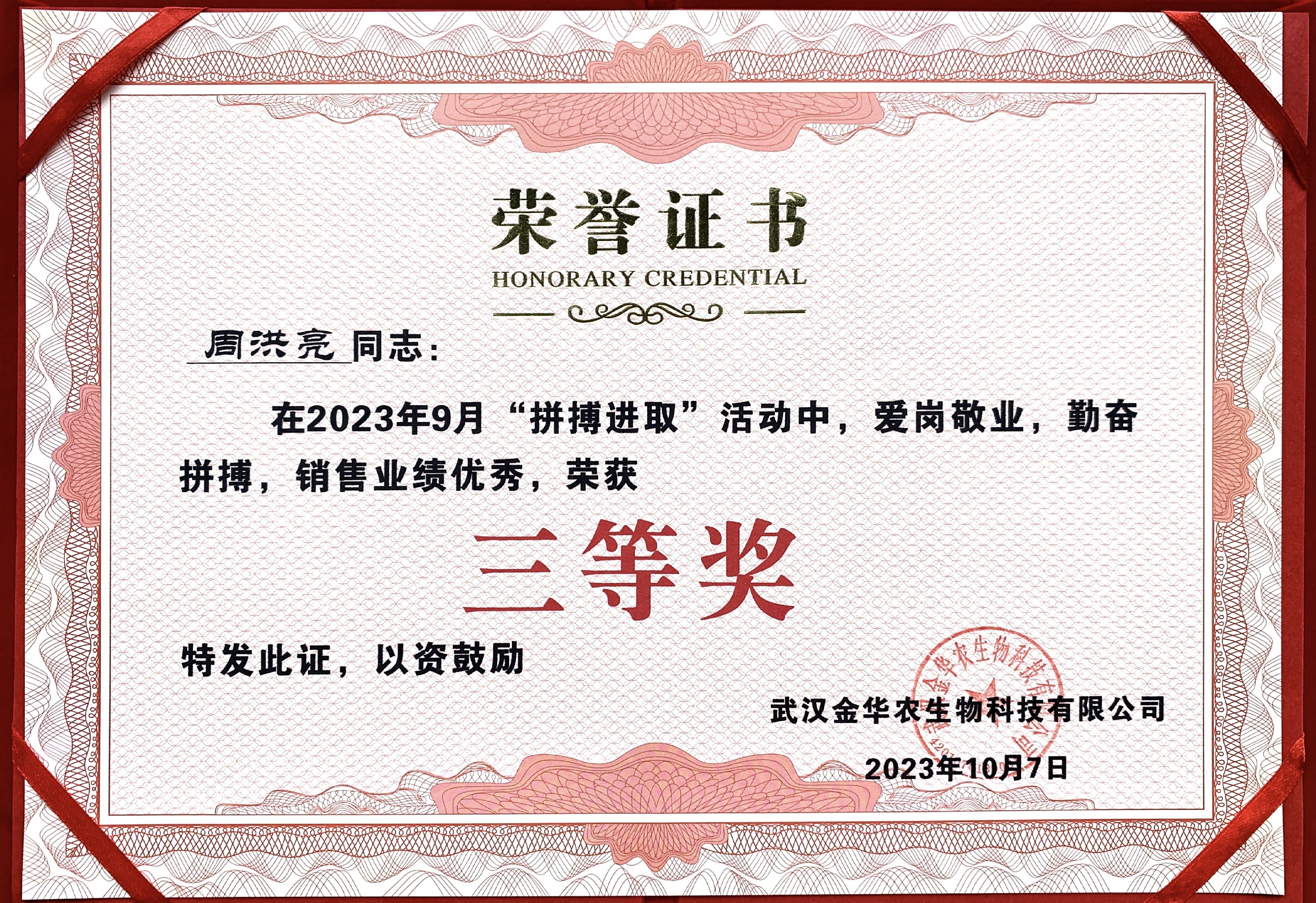 所謂金九銀十是銷售的黃金時節(jié),一批又一批武漢金華農(nóng)人踔厲奮發(fā)、砥礪奮進(jìn),忠于職守、愛崗敬業(yè),付出了更多的努力與擔(dān)當(dāng),在月度的“拼搏進(jìn)取”評優(yōu)活動中脫穎而出,出色地完成各項工作和銷售指標(biāo)?,F(xiàn)將獲獎名單公布如下: