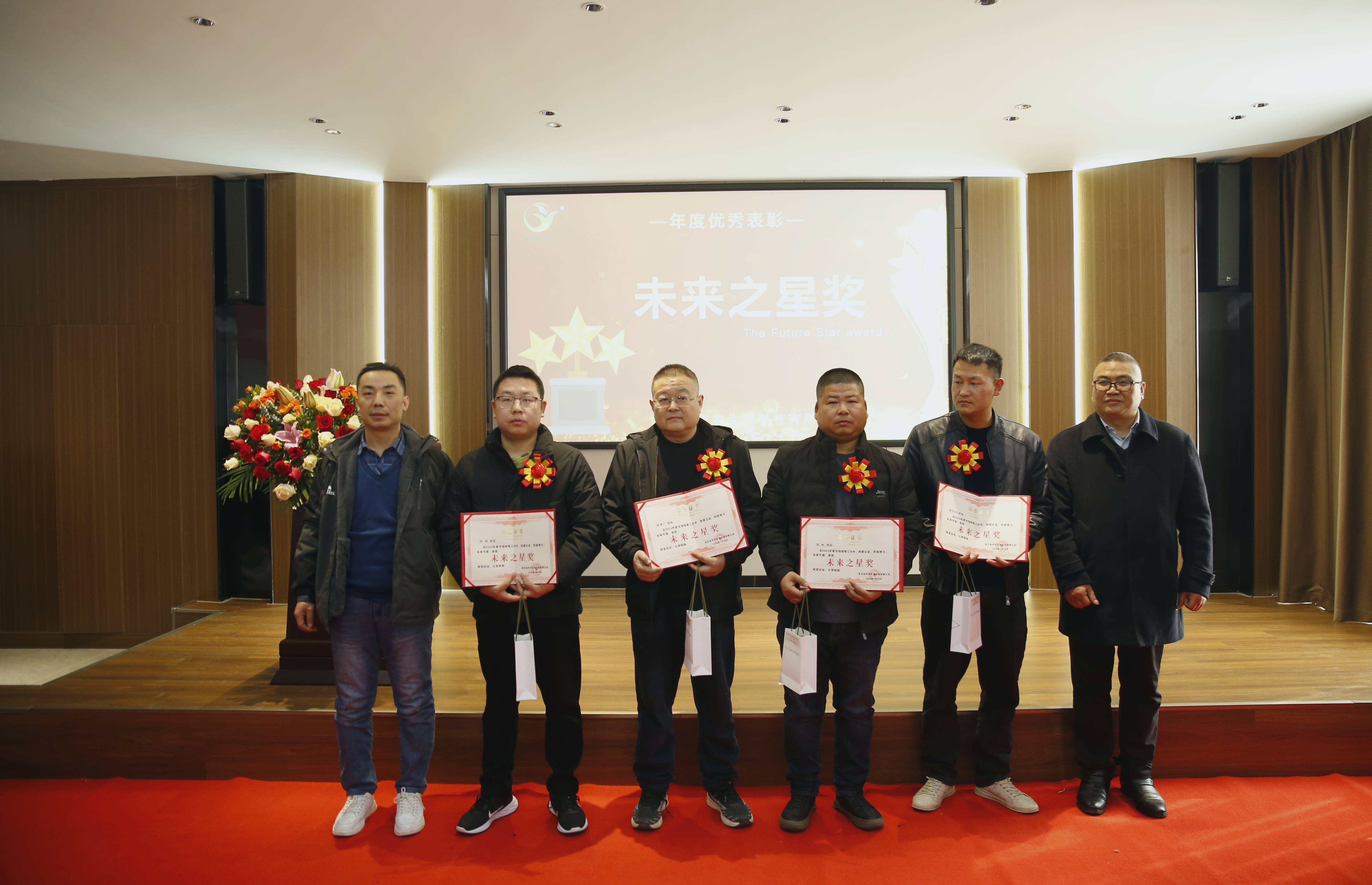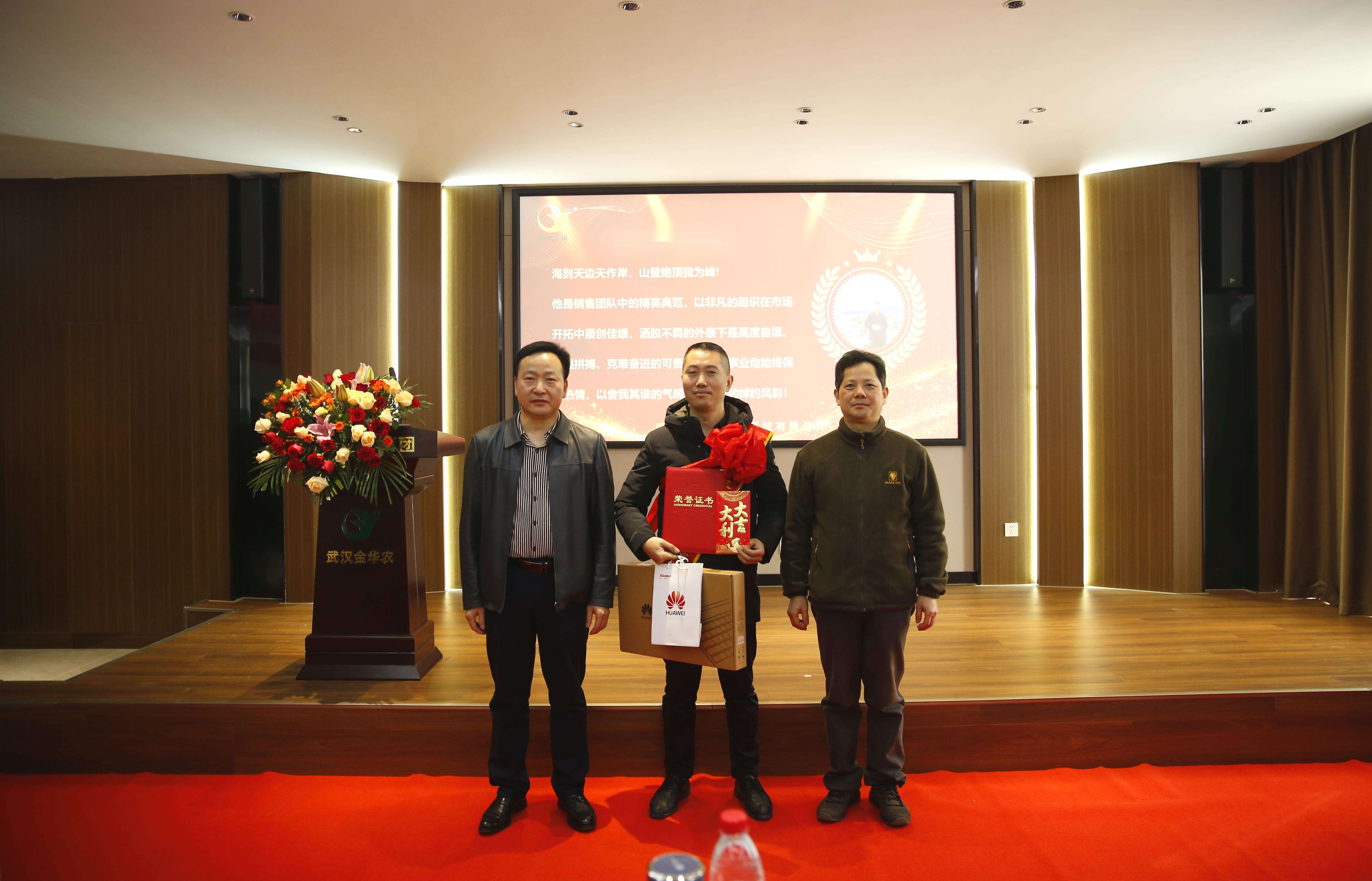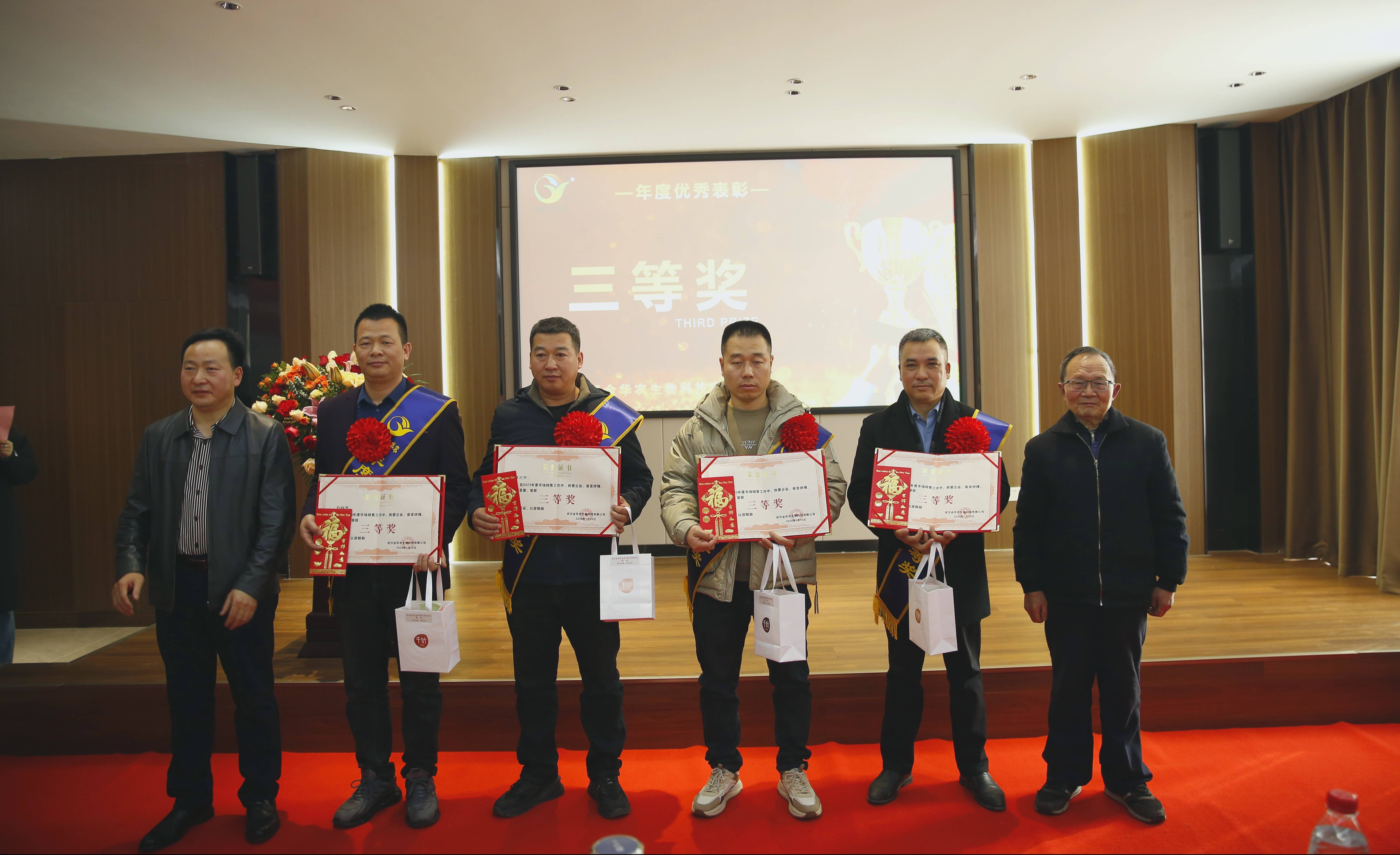 ? ? ??2024年1月10日,武漢金華農(nóng)生物集團隆重表彰了全年市場銷售的優(yōu)秀工作者。來自全國20多個省市的市場負責人和代表齊聚一堂,共同見證了這一榮耀時刻。近100人分享了獲獎?wù)叩南矏偱c自豪,既為市場精英們歡呼鼓掌,亦為自己的奮發(fā)努力而叫好。在新的一年里,他們秉持業(yè)績第一的信念,借鑒優(yōu)秀標兵,奮發(fā)向上,再創(chuàng)2024輝煌業(yè)績!??