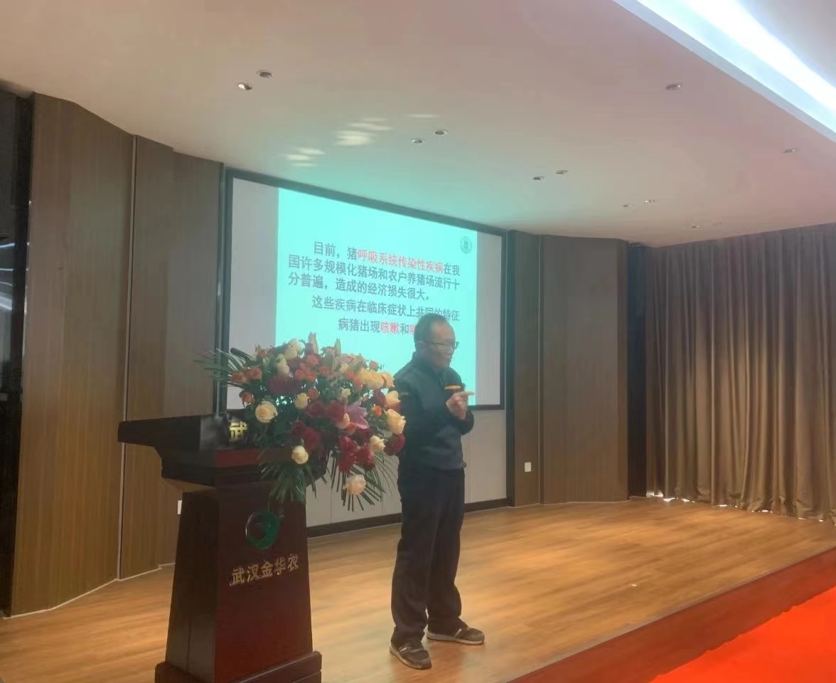 圖一為:武漢金華農(nóng)研發(fā)導(dǎo)師、華中農(nóng)業(yè)大學(xué)動醫(yī)專家、博士生導(dǎo)師姚寶安教授非洲豬瘟防控專題培訓(xùn)中