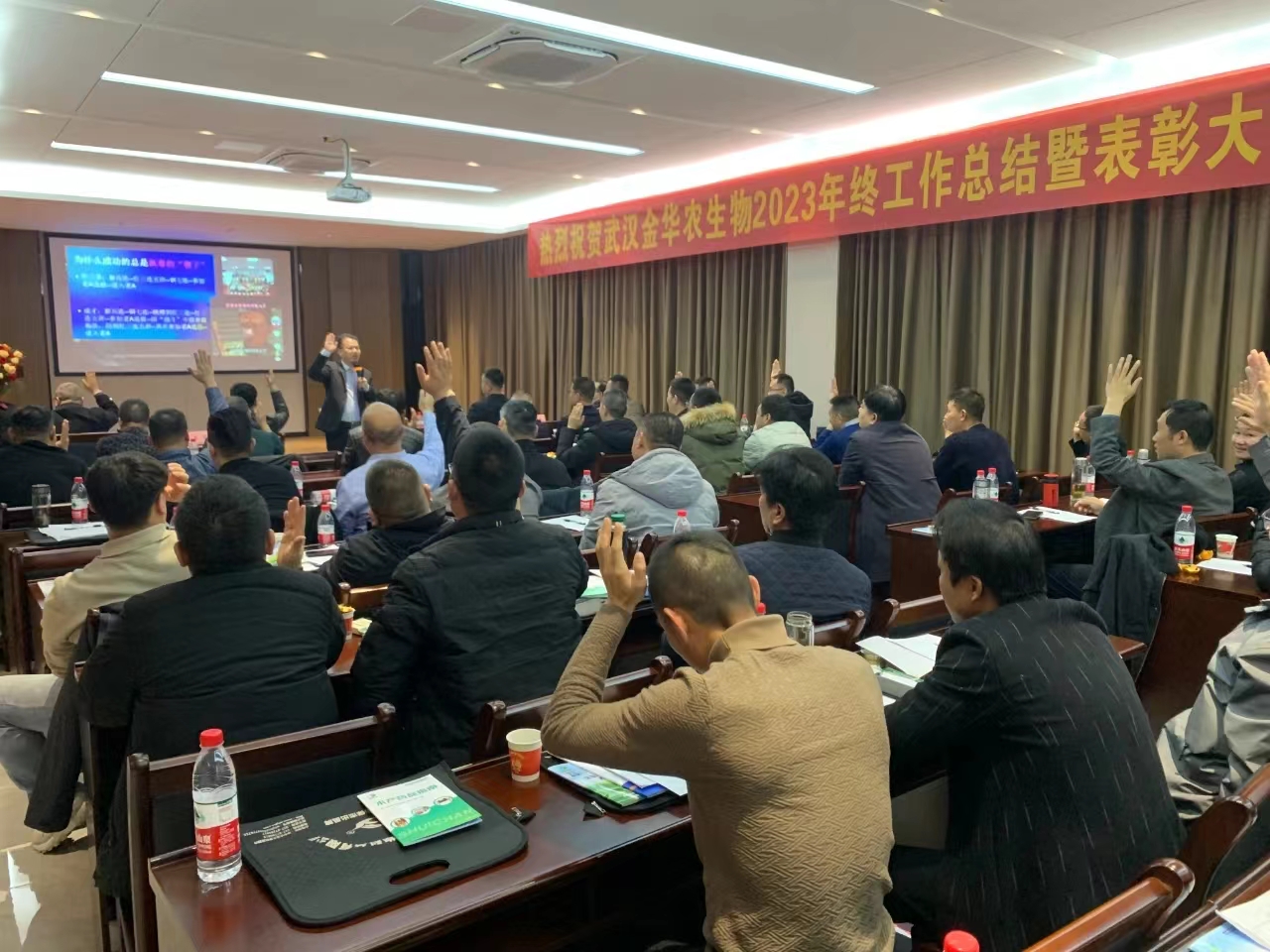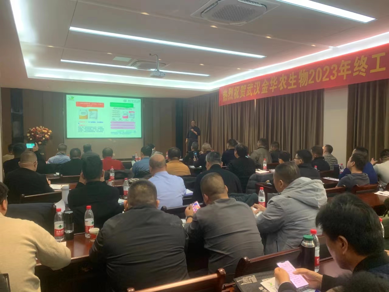 ? ? ? ?陜西大區(qū)負(fù)責(zé)人張賓老師分享主題《武漢金華農(nóng)畜禽產(chǎn)品工藝特點及臨床療效》,他通過實踐和經(jīng)驗總結(jié),分享了他在公司畜禽動保產(chǎn)品的使用和實踐中的心得和成果,通過幫助客戶不同生產(chǎn)階段的凈化方案實施,提高了畜禽疾病預(yù)防能力,降低了群發(fā)性疾病發(fā)生面,在同等市場環(huán)境下實現(xiàn)了效益最優(yōu)。2024年,公司將持續(xù)致力于產(chǎn)業(yè)體系構(gòu)建,不斷拓展產(chǎn)業(yè)鏈深度,努力擴(kuò)大市場張力和占有份額。