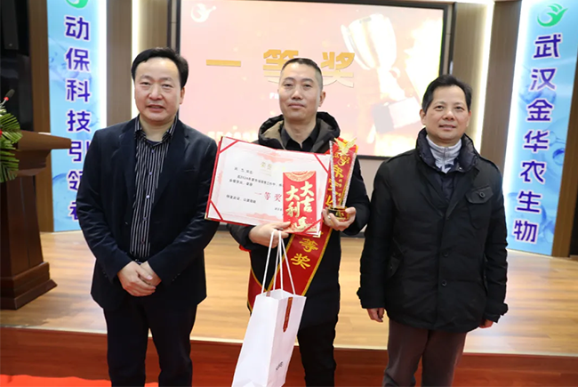 頒獎(jiǎng)嘉賓:武漢金華農(nóng)生物集團(tuán)董事長富勝、華中農(nóng)業(yè)大學(xué)動(dòng)醫(yī)臨床專家、博士生導(dǎo)師姚寶安教授