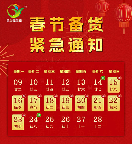 春節(jié)長假將至,受雨雪天氣影響物流運(yùn)輸受阻,且公司春節(jié)放假在即,為保障各養(yǎng)殖場正常運(yùn)營、不耽誤各位精英生意經(jīng)營,現(xiàn)緊急通知大家及時(shí)轉(zhuǎn)告客戶抓緊備貨!倉有備貨,養(yǎng)殖無憂,家中有糧,心中不慌!