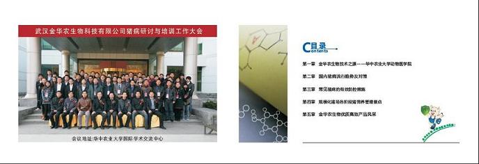 武漢金華農(nóng)生物公司2012年升級版技術手冊隆重上市,全新的技術指南和產(chǎn)品宣傳覆蓋面方、內(nèi)容詳實、知識豐富、指導極強!本手冊是由華中農(nóng)業(yè)大學臨床專家與金華農(nóng)公司技術部講師團共同撰寫,詳細注解了各種多發(fā)豬病的臨床特征、發(fā)病機理、對癥治療及組合用藥等,方便養(yǎng)殖戶及時防控豬病、對癥下藥、有效治療。