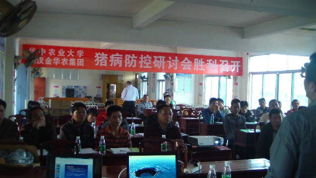 “豬是養(yǎng)大的,不是治大的。”4月28日,武漢金華農(nóng)生物集團(tuán)公司春夏季豬病防控專題研討會在廣東三個重點(diǎn)養(yǎng)殖縣市同時勝利召開,公司專家團(tuán)隊、技術(shù)部服務(wù)人員、廣東省大區(qū)黎經(jīng)理與來自全省的150多家規(guī)模化養(yǎng)殖場負(fù)責(zé)人以“高效養(yǎng)殖模式、健康用藥理念”為主題,進(jìn)行了專題研討學(xué)習(xí)與經(jīng)驗交流。