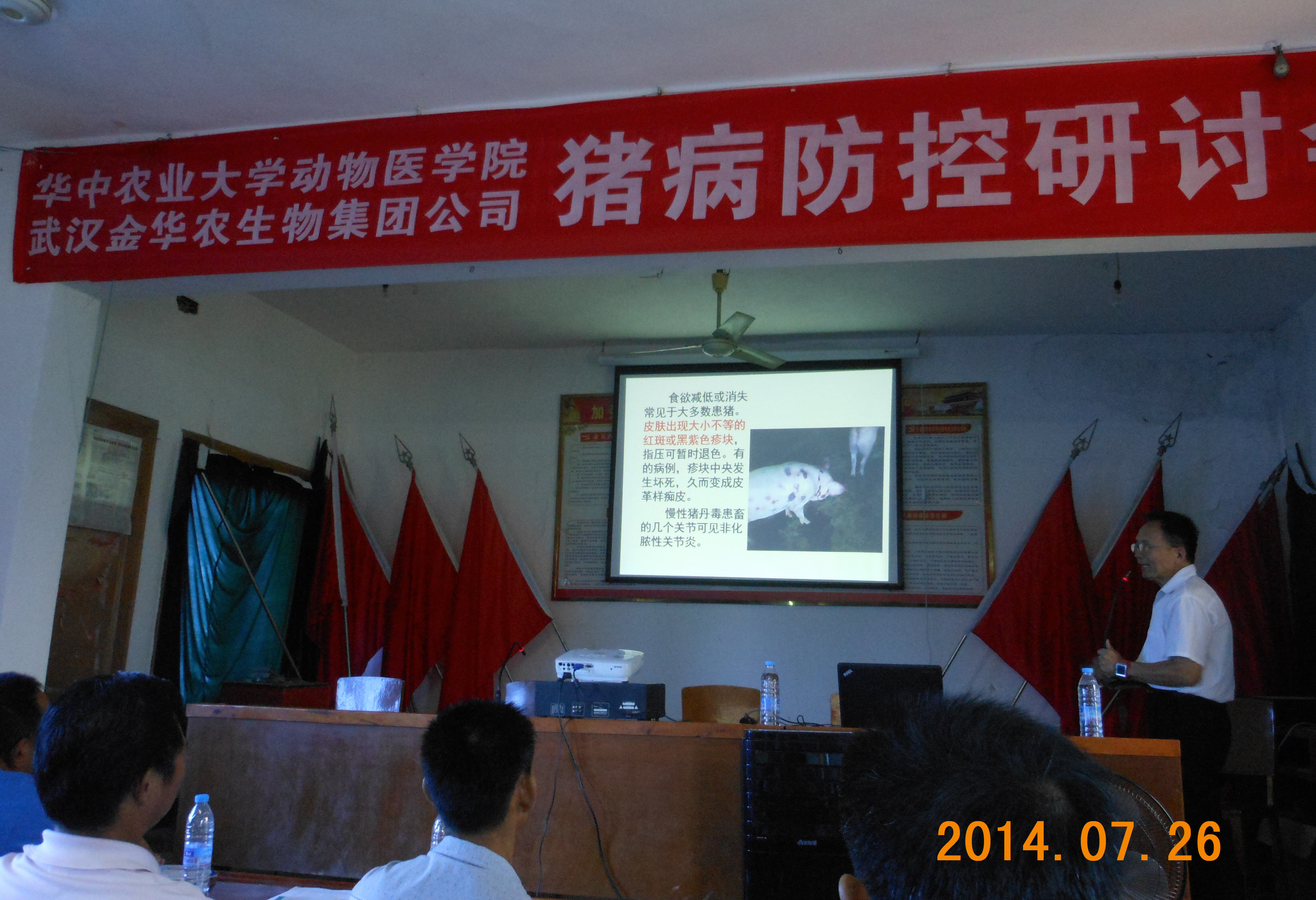 7月26日,武漢金華農(nóng)生物在湖北京山縣成功舉辦豬病研討會,主題內(nèi)容涉及兩大方面:夏季易發(fā)病的防控與治療、京山當(dāng)?shù)亓餍胸i病的防控與治療。