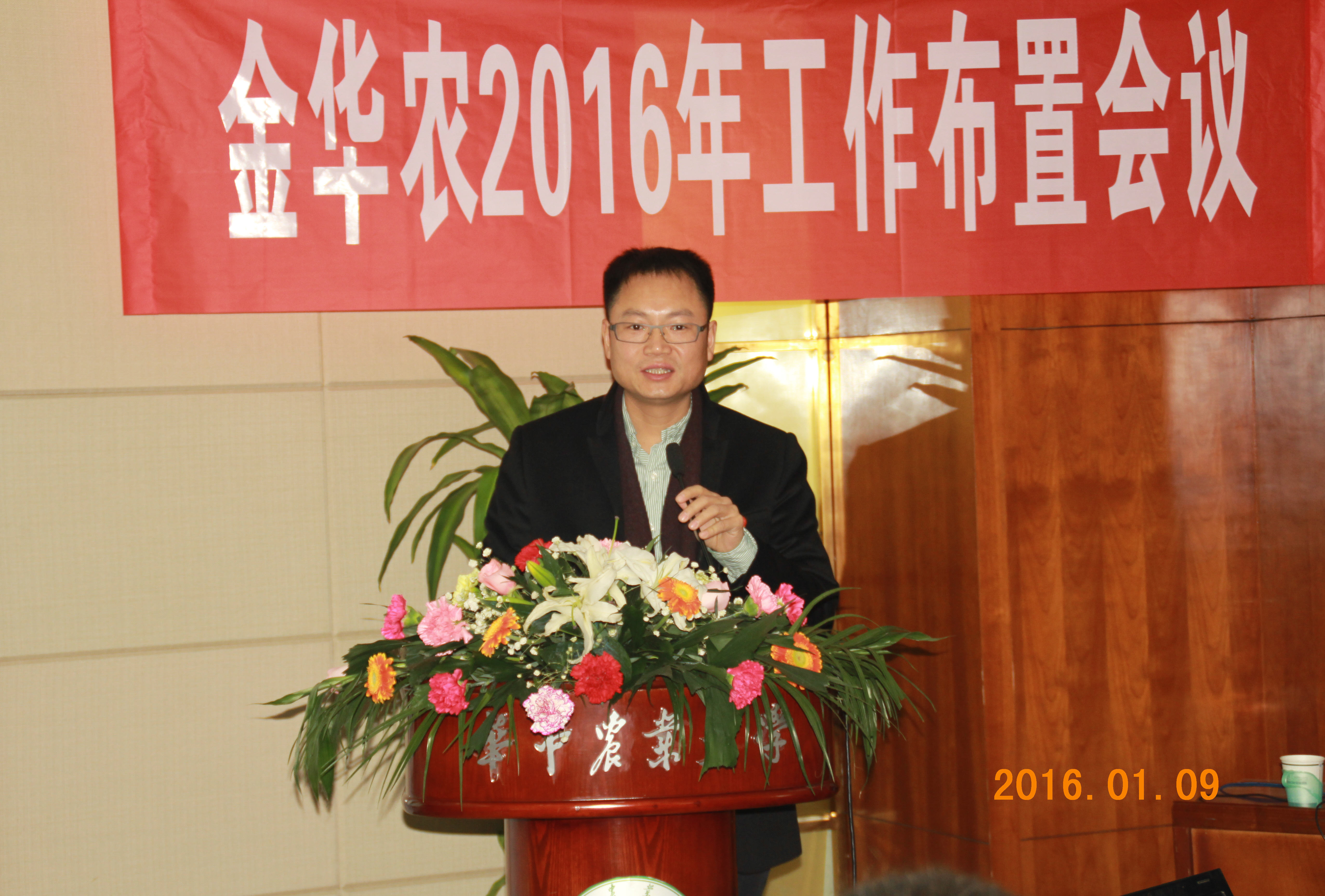 劉興斌書記賀詞里指出:我和富勝總經(jīng)理相識也快20年,多年前曾在同一部門共事,富總是一位敬業(yè)、勤奮、專注、拼搏的同志,武漢金華農(nóng)公司雖然是一家年輕的企業(yè),但是近年來的發(fā)展,大家有目共睹,在畜牧獸醫(yī)行業(yè)里口碑非常不錯!連續(xù)三年,保持50%年增長率,十分難得!希望在以后的工作發(fā)展中,武漢金華農(nóng)公司進(jìn)一步加大與動物醫(yī)學(xué)院、動物科技學(xué)院的項(xiàng)目合作和技術(shù)聯(lián)合,全面深化校企合作,全面實(shí)現(xiàn)科研創(chuàng)新!我祝賀武漢金華農(nóng)公司在富總的帶領(lǐng)下,2015年取得了輝煌業(yè)績!預(yù)祝武漢金華農(nóng)公司2016年銷售業(yè)績更上一層樓,期待2016更加精彩!