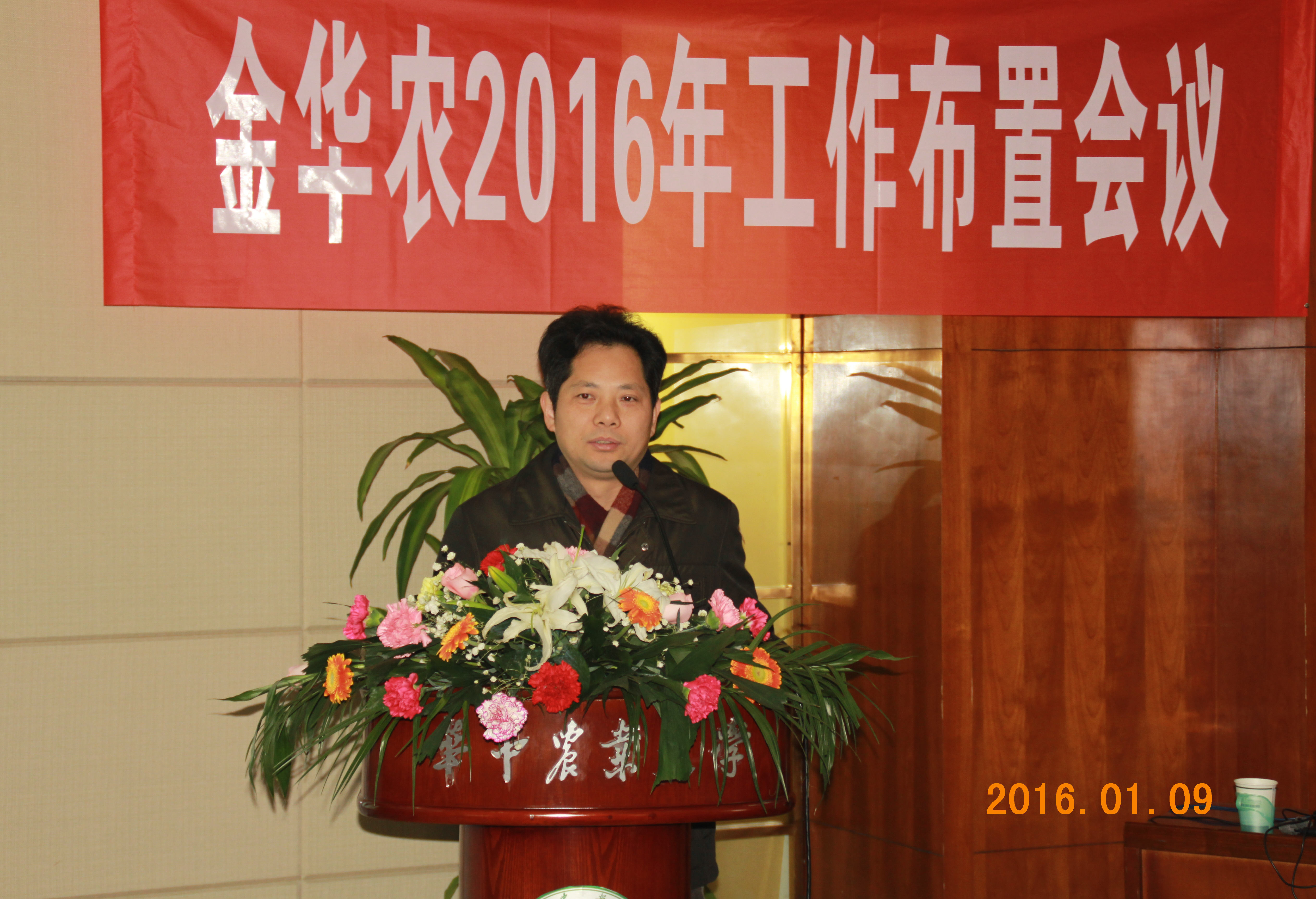 1月9日上午,華中農(nóng)業(yè)大學(xué)動物醫(yī)學(xué)院黨委書記劉興斌書記、華中農(nóng)業(yè)大學(xué)附校黨委書記李仁剛書記、華中農(nóng)業(yè)大學(xué)人事處龍健飛處長、華中農(nóng)業(yè)大學(xué)畜牧獸醫(yī)臨床專家張維民教授、華中農(nóng)業(yè)大學(xué)動物飼料營養(yǎng)專家齊德生教授、湖北電視臺農(nóng)業(yè)頻道毛記者一行來到校內(nèi)國際學(xué)術(shù)交流中心,隆重出席并參加武漢金華農(nóng)生物2015年終工作總結(jié)及表彰大會,并向公司致賀。