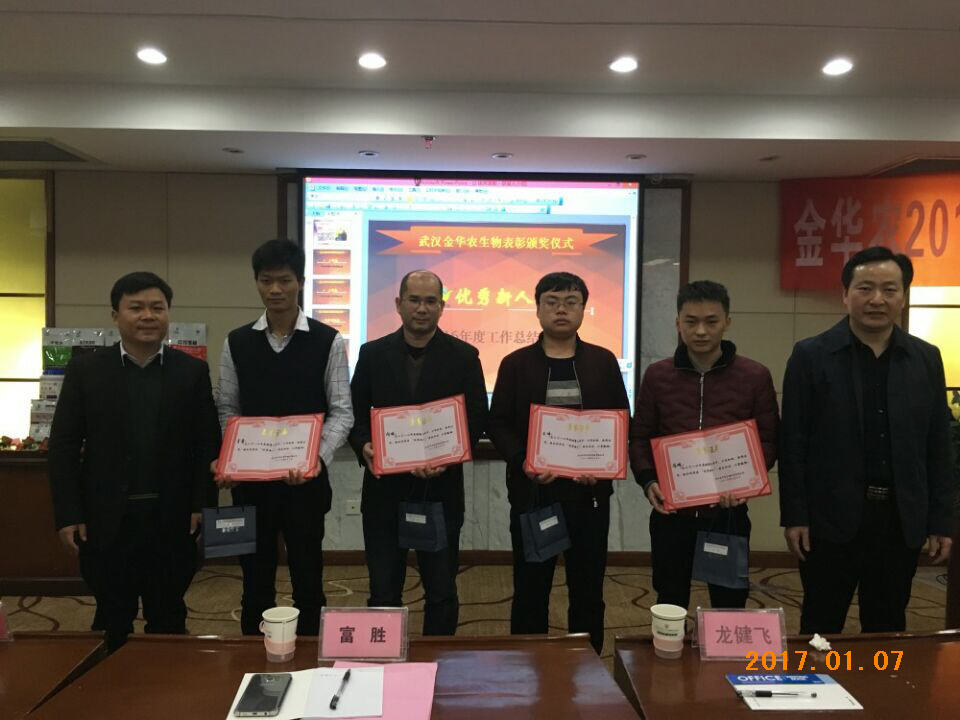 2017年1月7日,武漢金華農(nóng)公司秉承一貫“惜才、愛才、培養(yǎng)、拔高、貢獻”的人才理念,對全年市場優(yōu)秀工作者進行了大力表彰,各路市場精英迎來了屬于他們的肯定和榮耀!公司行政、市場近百人團隊分享了他們的喜悅與自豪,既為市場精英們歡呼鼓掌,也為自己的努力而叫好,新的一年,讓我們向行業(yè)標桿們看齊,勇往直前,爭當?shù)谝唬?/span>