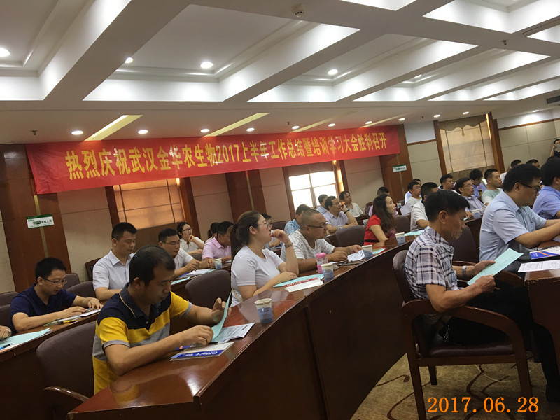 6月27日至30日,武漢金華農(nóng)生物科技有限公司2017年上半年工作總結(jié)暨下半年工作部署會(huì)議,在華中農(nóng)業(yè)大學(xué)成功召開。來自全國各地的精英代表,齊聚獅子山下,向公司交上滿意的業(yè)績單。截止今年6月底,公司業(yè)績實(shí)現(xiàn)16.2%的增幅,銷售額達(dá)近五年來同期新高。
